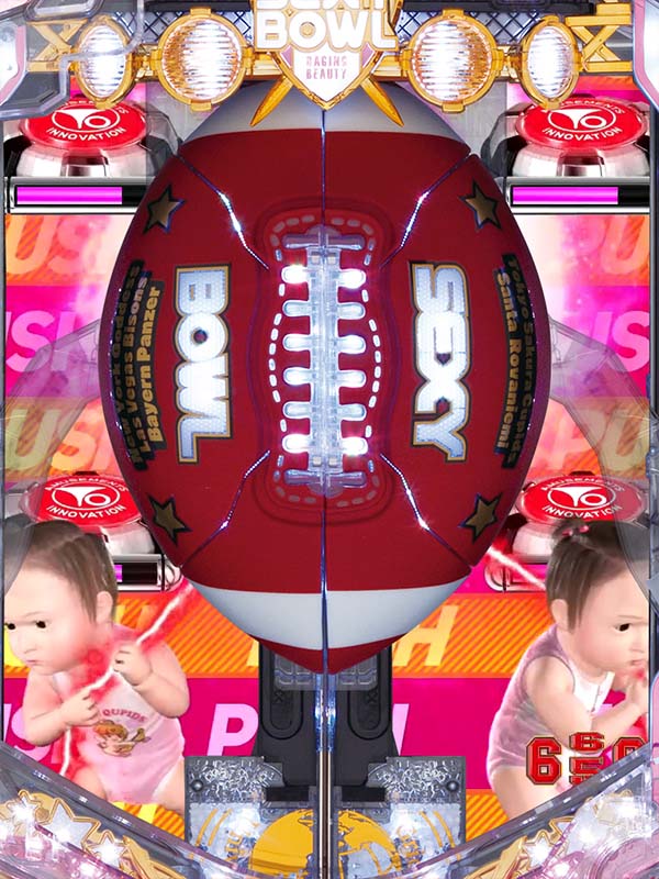 勝利後にボタンをPUSHし、スパークボウルギミックが可動すればスーパービッグボーナス獲得。