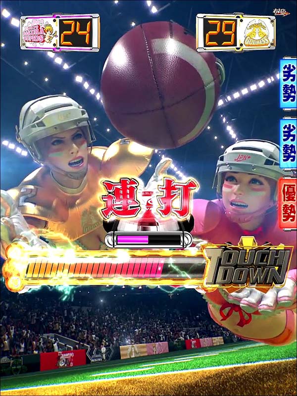 ファイナルチャンスではタッチダウンチャンスや赤文字出現で期待度アップ。