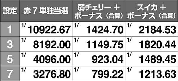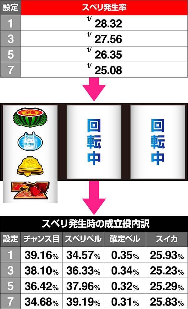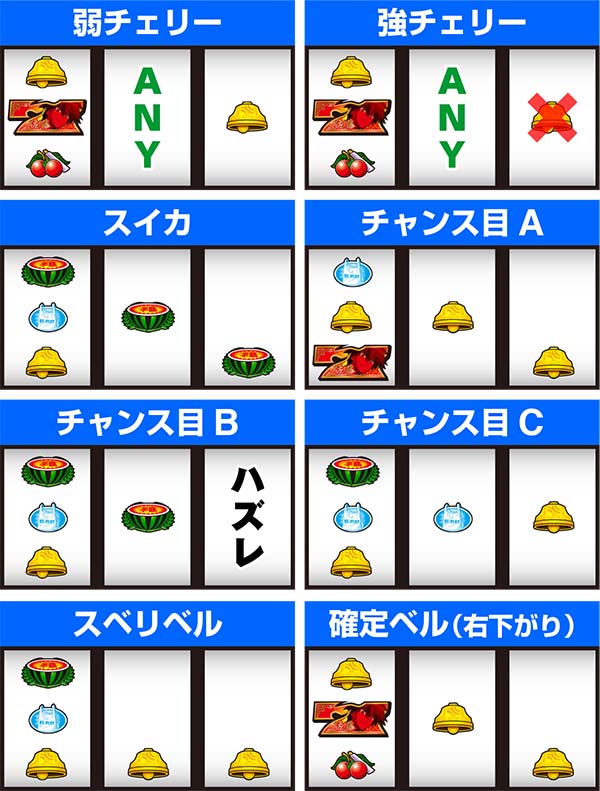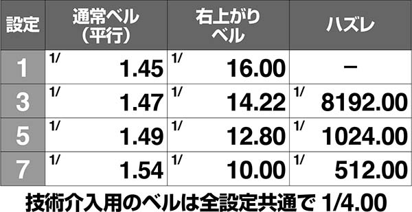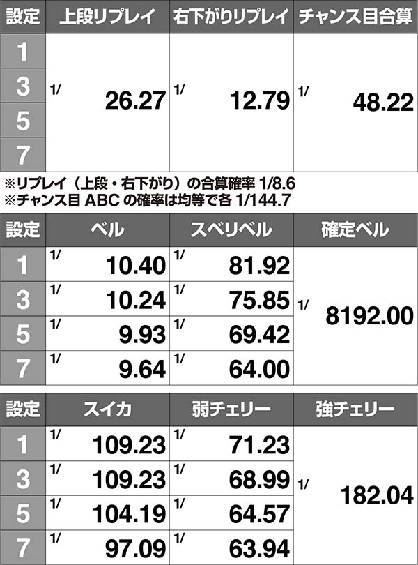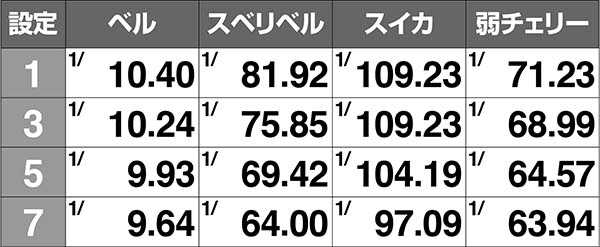 【通常ベル/スベリベル/スイカ/弱チェリーの確率に設定差アリ】