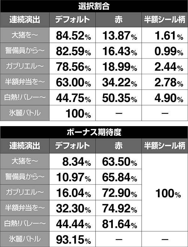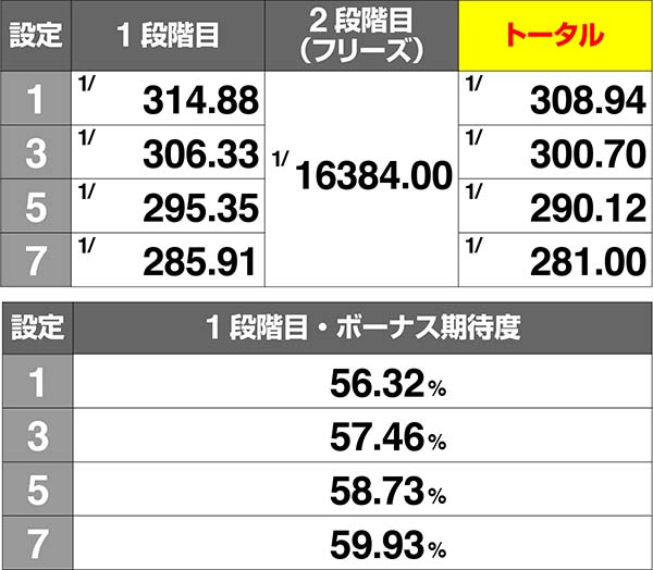 ●設定差の大きい特定ボーナス確率