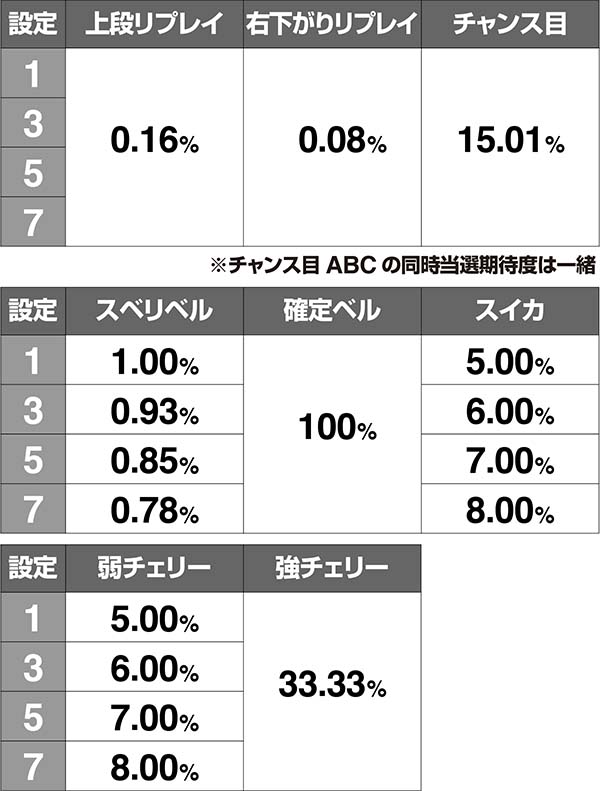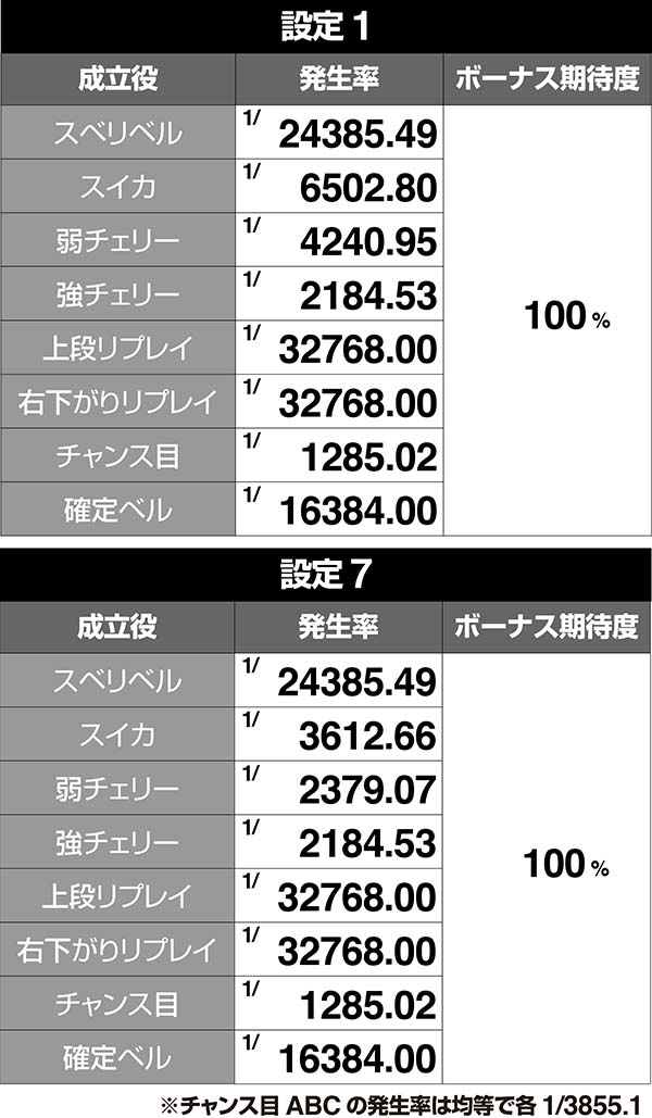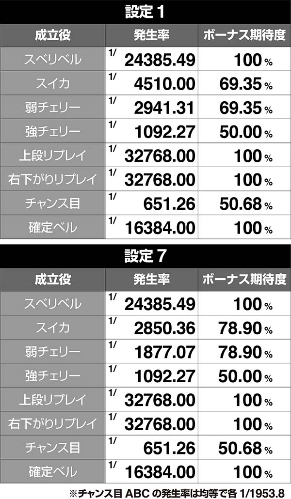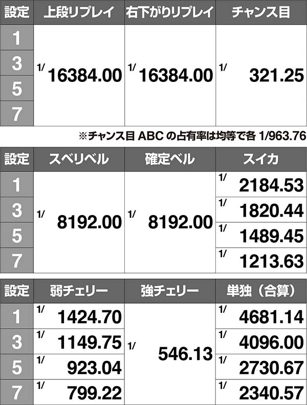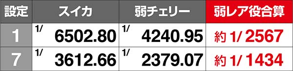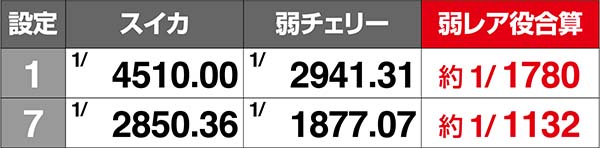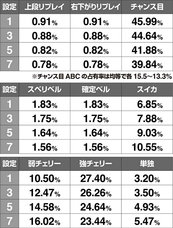 設定差のある小役確率