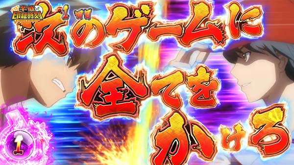 ラスト1Gの競り合いで“次のゲームに全てをかけろ”の文字が入れば期待度アップ。