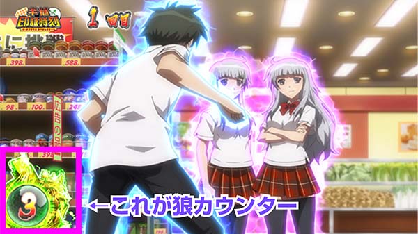 【狼カウンターの色でボーナス期待度を示唆】