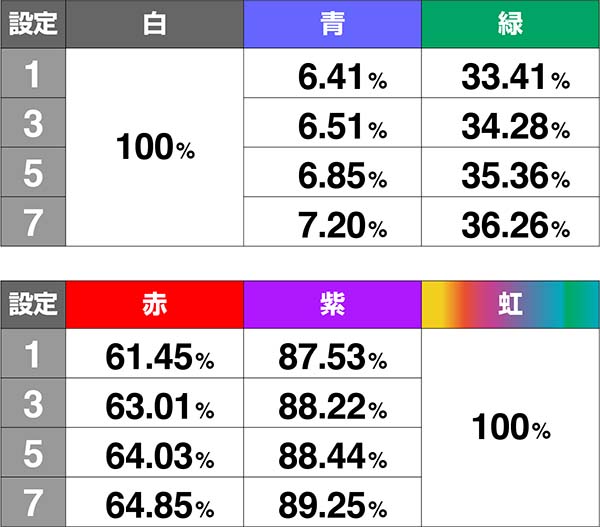 色が昇格するほどチャンスとなり、虹までいけばボーナス確定だ。