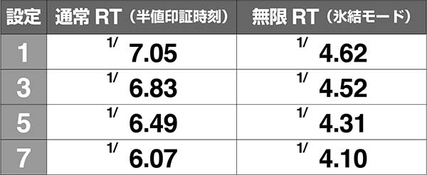 ●無限RT(氷結モード)中の小役確率