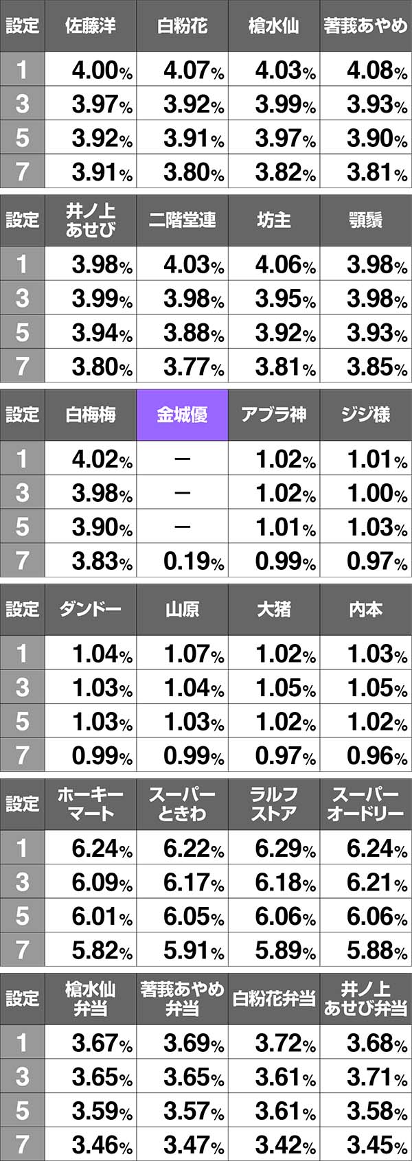 金3(金城優)…設定7
