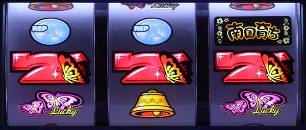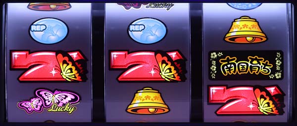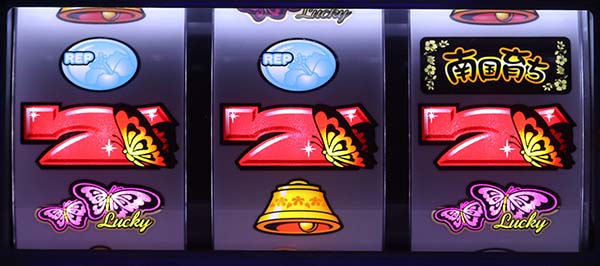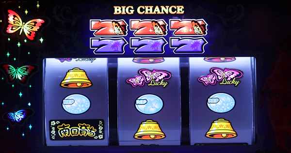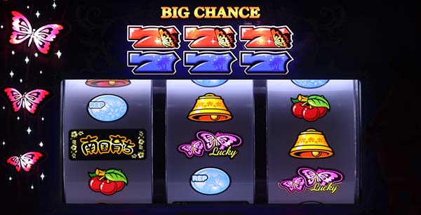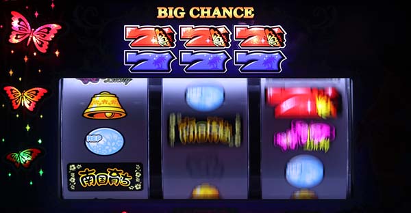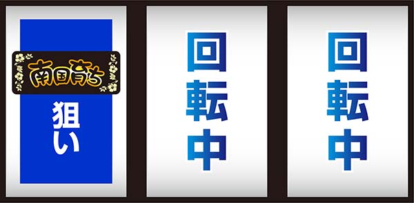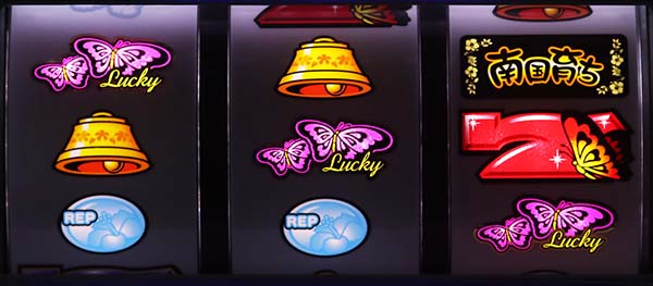 左リールを最初に止めた場合は第3停止で蝶が揃えば正解となり、次ゲームで7が揃って南国ボーナスがスタートする。
