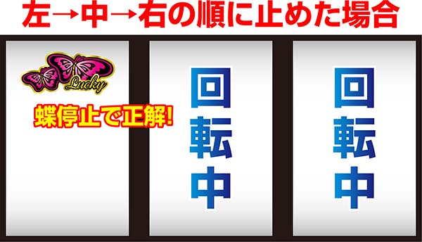 「どのリールを止めるかが重要(蝶チャンス役Aの場合)」