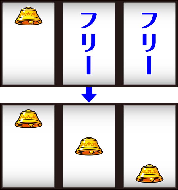 残りのリールをフリー打ちし、ベルを獲得して終了となる。