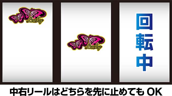 ちなみに、中→右or右→中の順で押した場合、蝶がテンパイした時点で2リール確定となる。