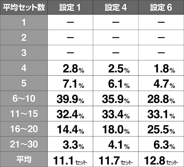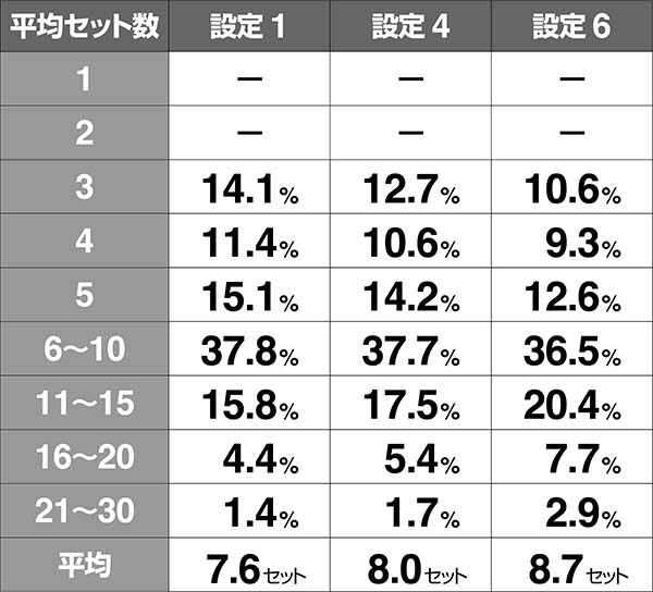 次々セットまで継続が確定するだけでなく、MB成立時のボーナスストック期待度も優遇されている。