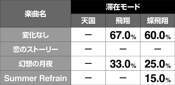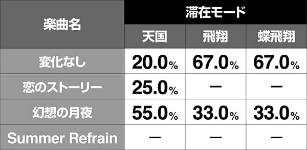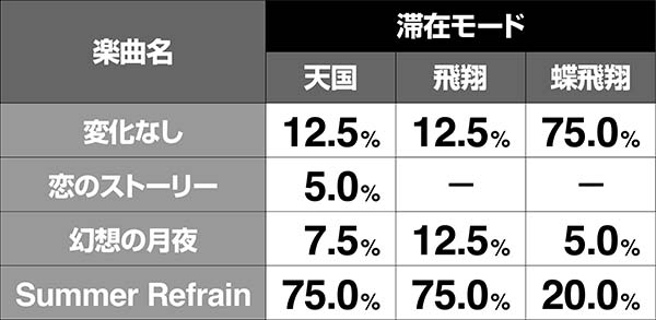 現在の継続数が奇数(3セット目以降)の場合は66%、偶数セットの場合は75%で継続といった南国育ちシリーズを踏襲した仕様となっている。