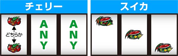 中リールにスイカを目押しし、否定すればチャンス目orリーチ目となる。