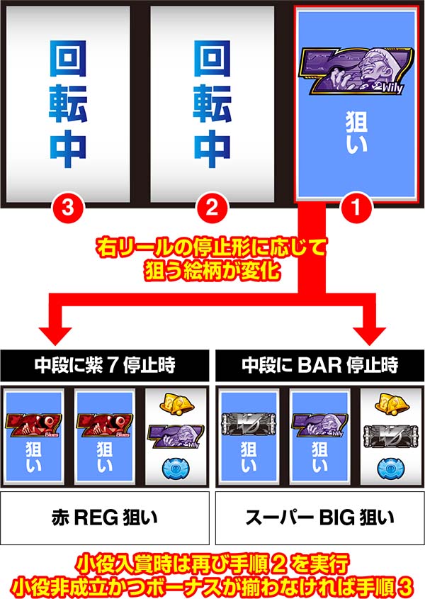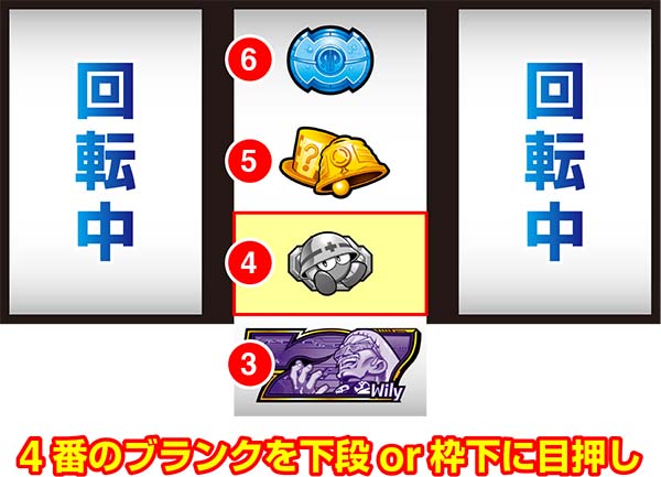 BARを枠上〜上段に狙い、右リールをフリー打ち。