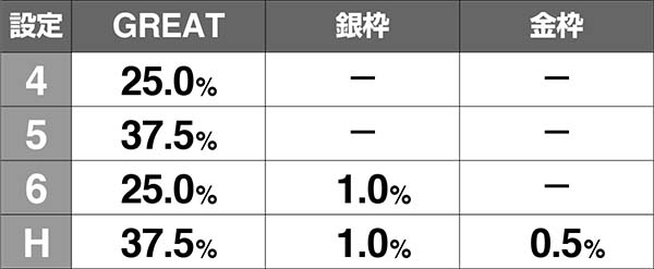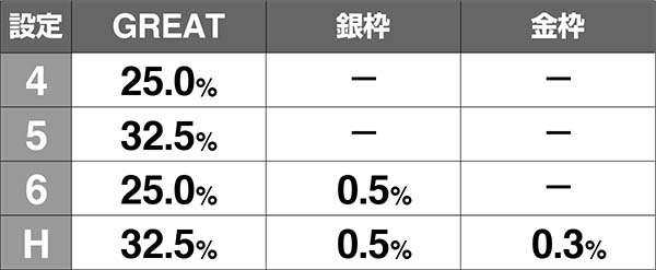 銀枠の一枚絵なら設定6orH、金枠なら設定H濃厚だ。