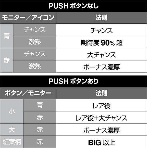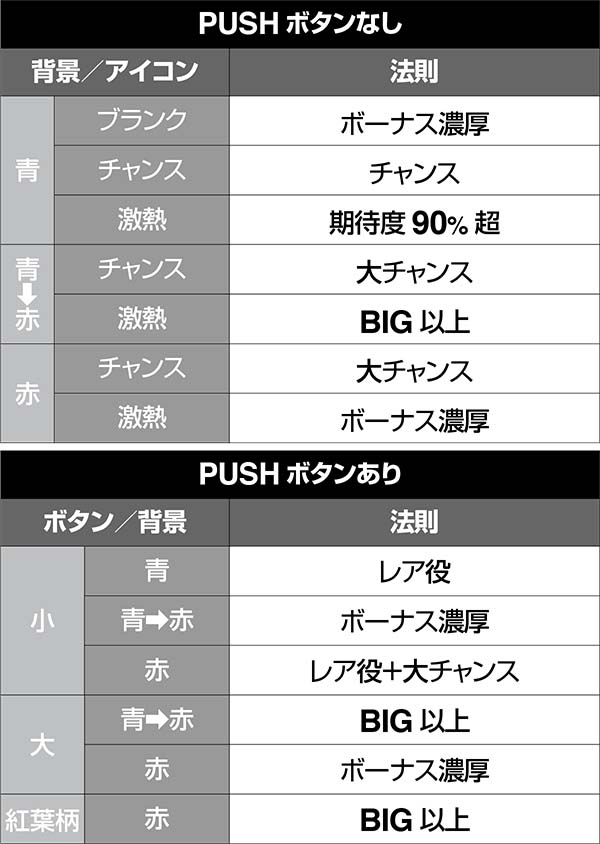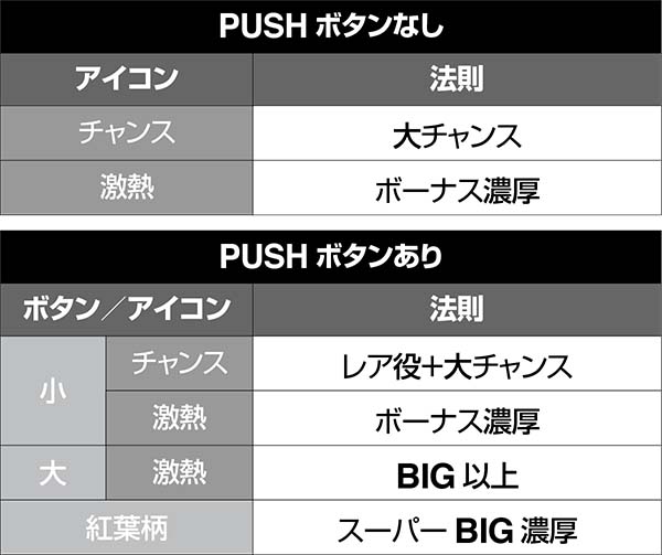 激熱出現時は基本的にボーナス期待度90%以上だが、演出の組み合わせによってボーナスやスーパーBIG濃厚となるケースも多い。