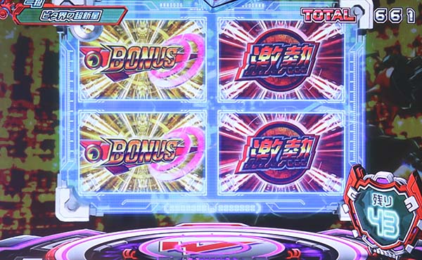 アイコンがすべてチャンスならボーナス、激熱ならスーパーBIG濃厚だ。