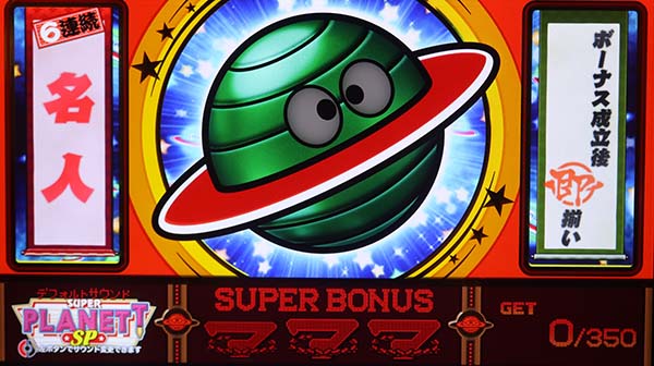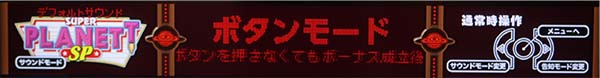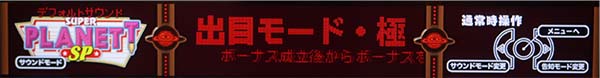 「スーパープラネットSP」はボーナスのみでメダルを増やすボーナスタイプ。 獲得枚数はBIGが約300枚、REGが約108枚で、ボーナス合成確率は約1/128~1/156と、SPシリーズ史上最も高くなっている。 「出目モード」・「ボタンモード」・「出目モード・極」という選べる3つのモードを搭載しており、スープラを愛する熟練のプレイヤーから初心者まで、ニーズに合ったゲーム性で楽しむことができる。 |