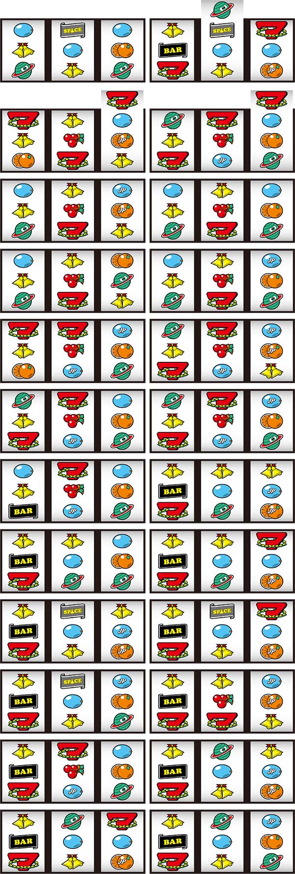 右リールの赤7の位置がわかりづらいプレイヤーは“BARの下側にある赤7”と覚えておけばわかりやすいはずだ。