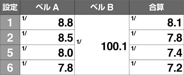 その他の小役確率は通常時と同じ。