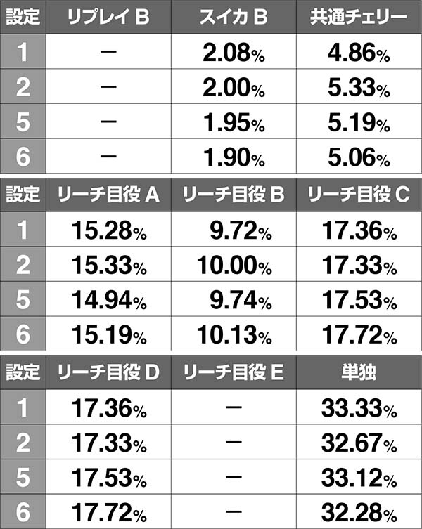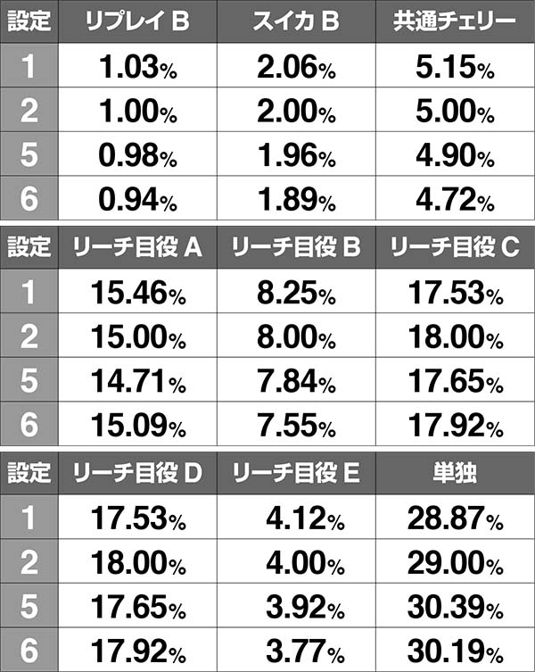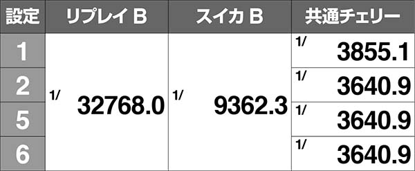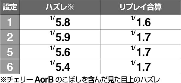共通チェリーとの同時当選確率のみ設定差がある。