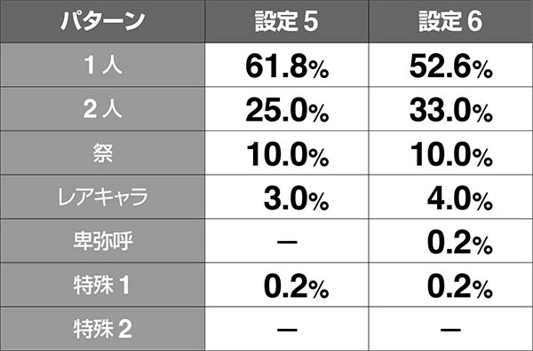 ●設定6での卑弥呼の出現率