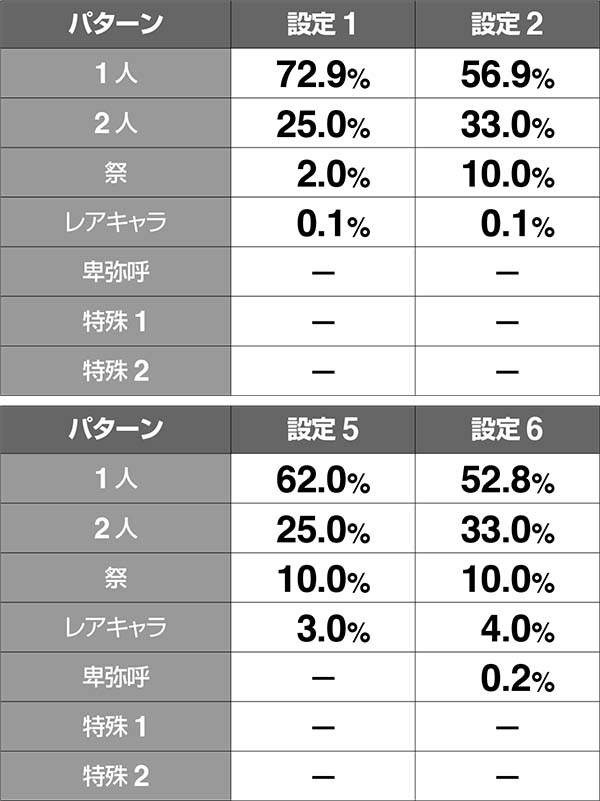 卑弥呼…設定6確定(1種類)