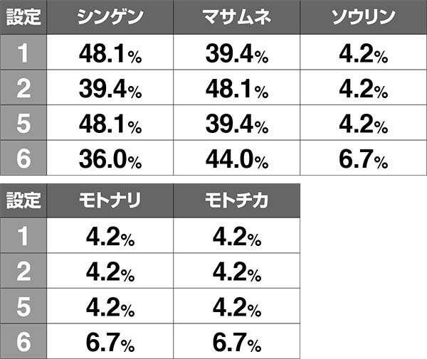 ソウリン/モトナリ/モトチカ…設定6のみ多少出やすい