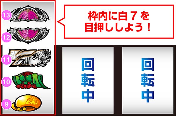 「左リール下段に白7をビタ押し」