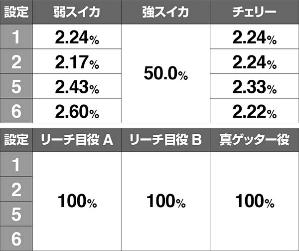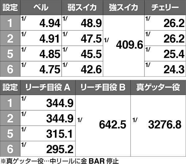 【強スイカ・リーチ目役B・真ゲッター役以外は設定差が存在】