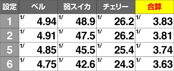 【ベル・弱スイカ・チェリーは高設定ほど出やすい!】