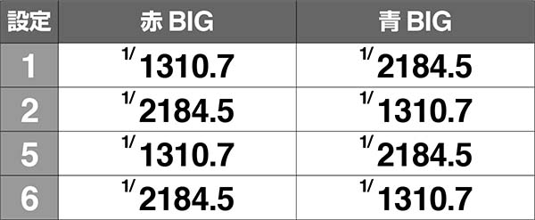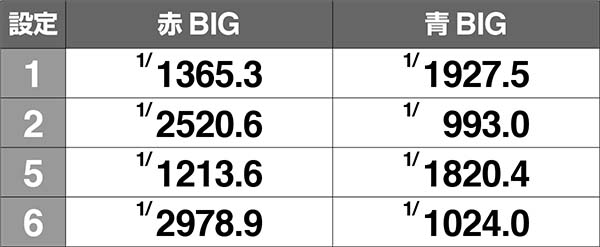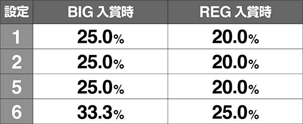 REGよりもBIGで発生しやすく、若干ではあるが設定1・2・5よりも設定6の方が発生しやすい。