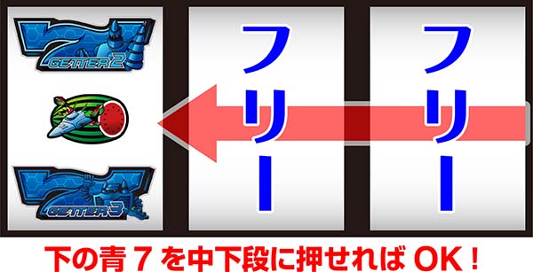 真ゲッターが中段に止まれば成功、左右のリールはフリー打ちでOKだ。