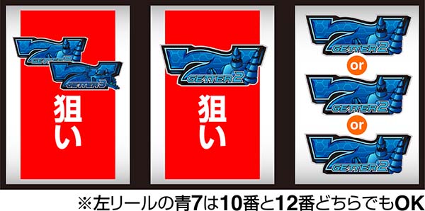 中左リールに赤7もしくは、青7を狙ってREGを揃える。