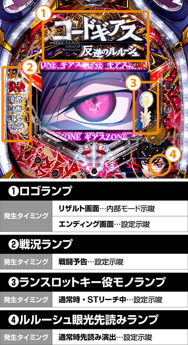 ランスロットキー役モノのランプの色で設定を示唆。