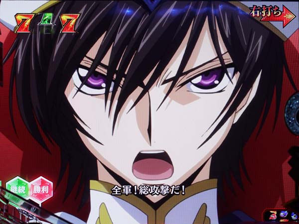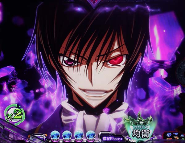 変動中やリーチ中に盤面右下のルルーシュの目が赤く光れば大当り濃厚!?
