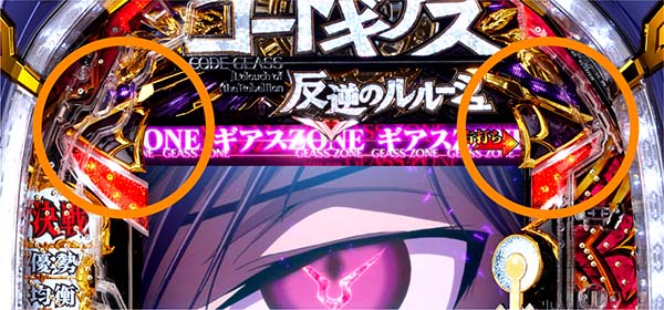 朝イチの1回転目に盤面上の大ギアス役モノの両端が白にチカッと光れば設定変更濃厚!?