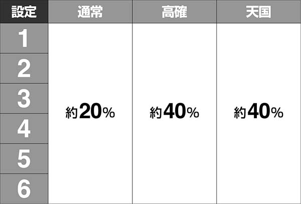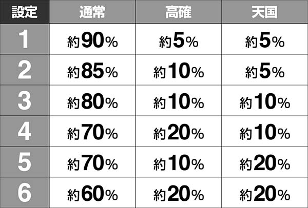 高確や天国なら高設定を示唆する演出の出現率が高い。