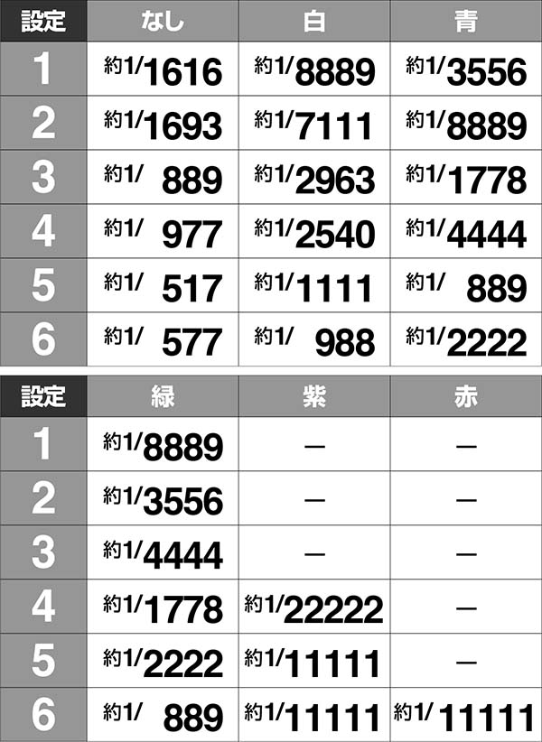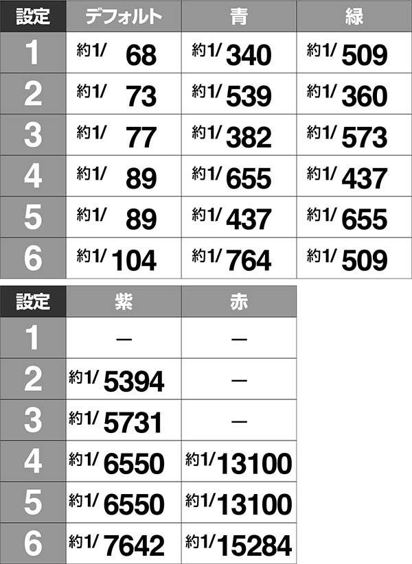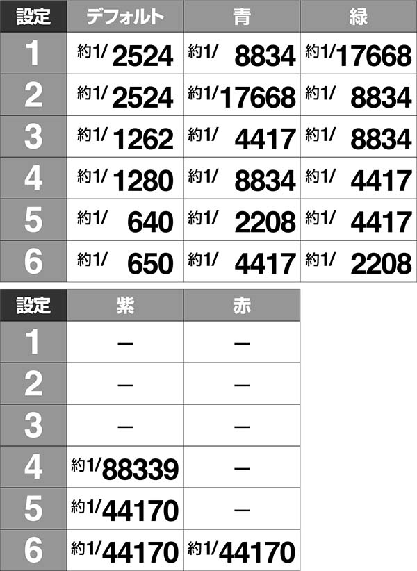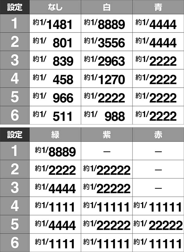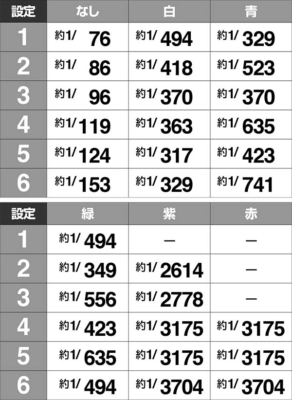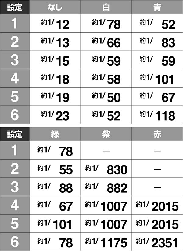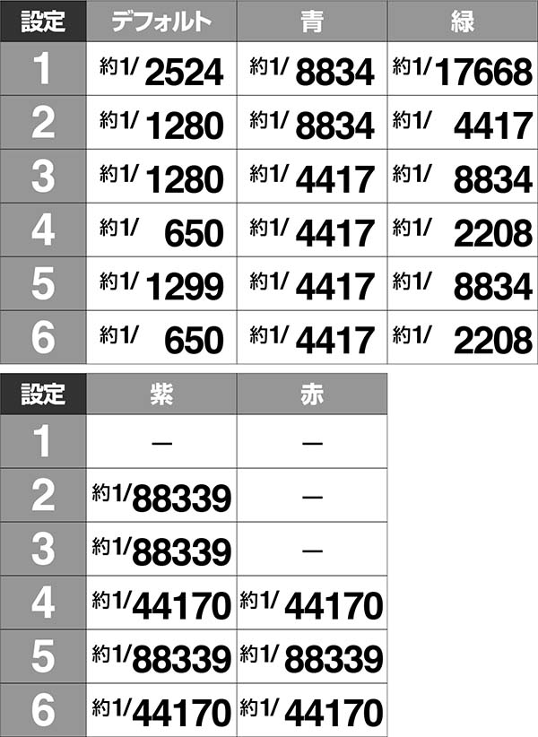 ・紫は設定2以上、赤は設定4以上が濃厚