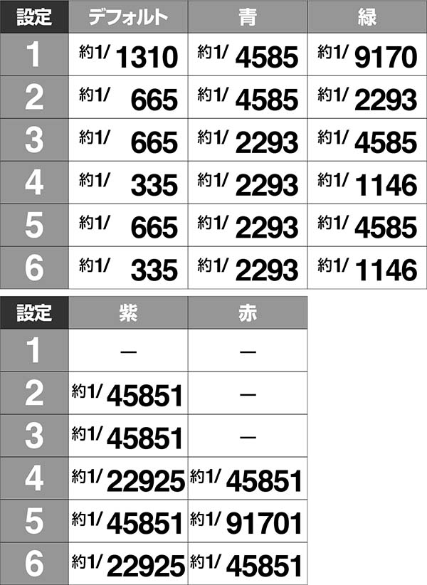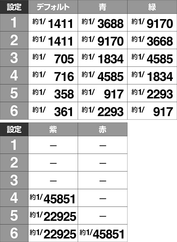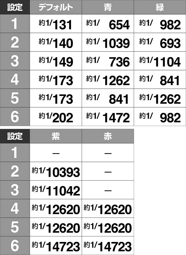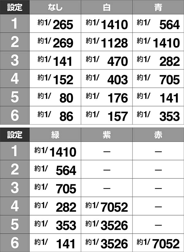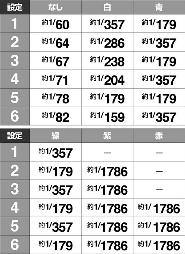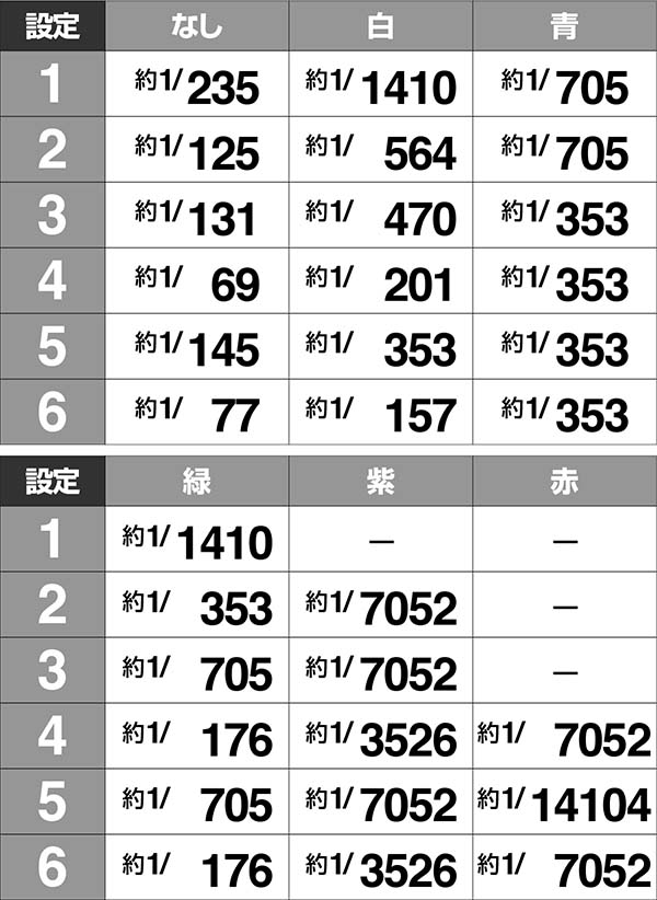 ・青は奇数設定、緑は偶数設定で出現しやすい
