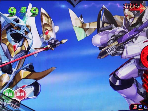 スーパーリーチ中のランスロットキー役モノのランプ色に注目。