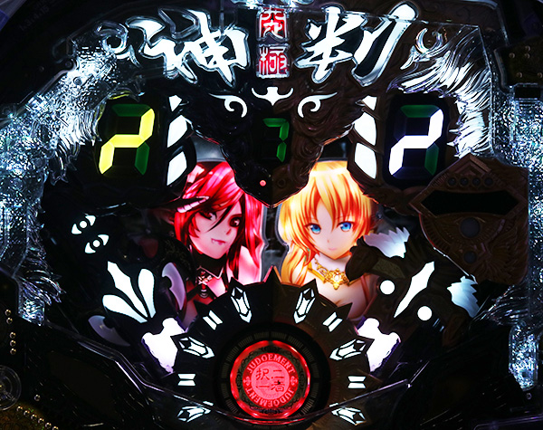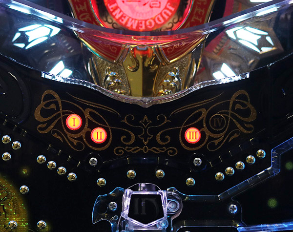 1/2で運命を決める究極の1台がここに完成!! 初当りの50%で究極神判に突入し、時短と残り保留を合わせた最大2回転で連チャンを狙う。右打ち中の実質確率は約1/2、すなわち2回のチャンスで50%を引き当てれば2000個overの出玉を獲得できるシンプルかつ大胆なゲーム性が魅力となっている。 初当りのメインとなるJUDGEMENTリーチも2択演出となる本機。運命をかけた1/2に身を委ねよ! |