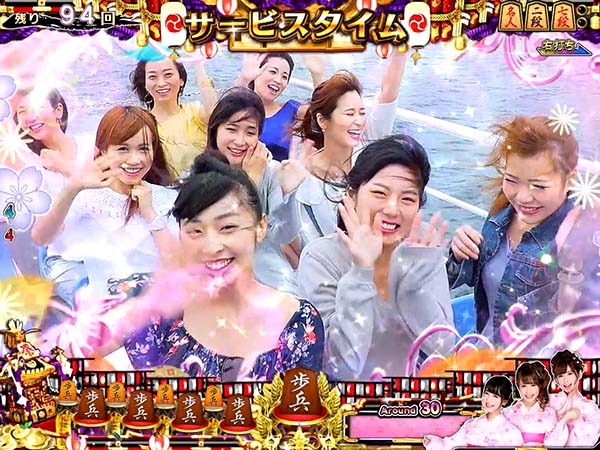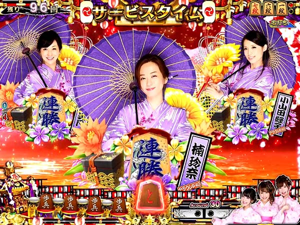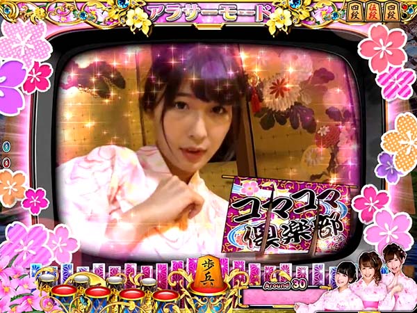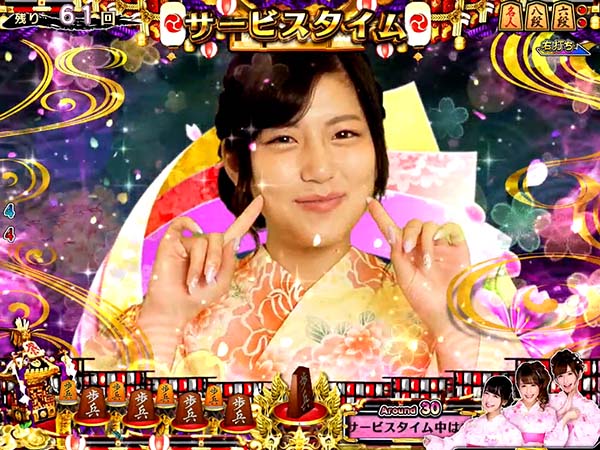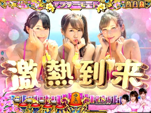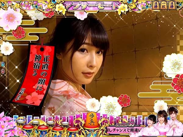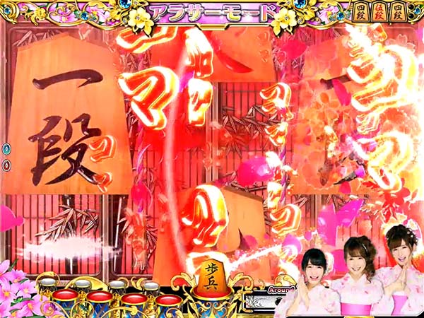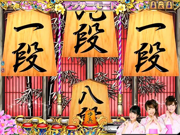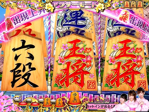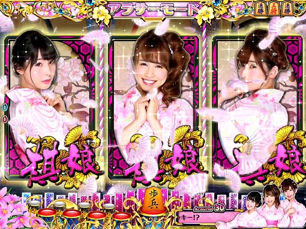 停止図柄がすべて棋娘図柄になればコスプレチャンスに発展。