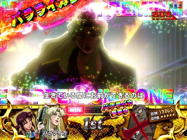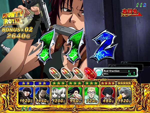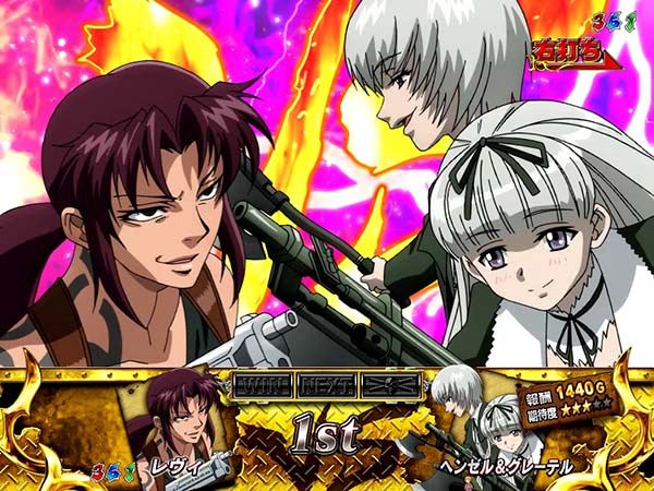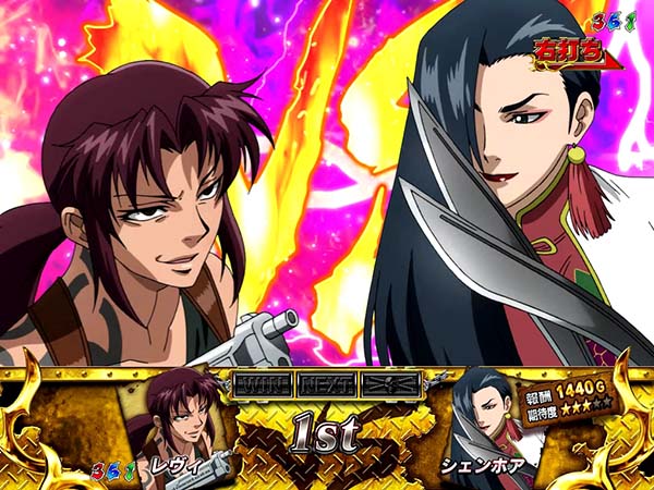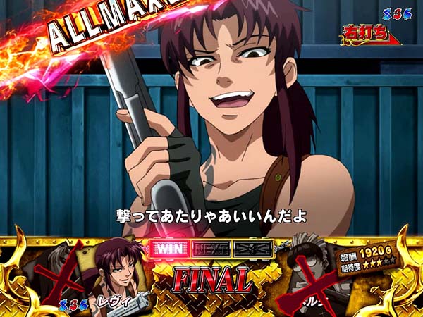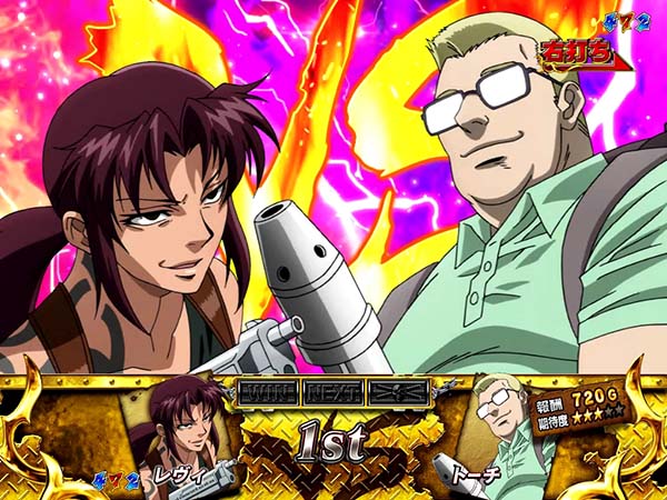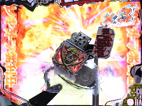 上下のアタッカーが連動して開放されることで、爽快な右打ちを実現した「ゼロアタッカー」を搭載!! スペックは確変ループタイプで、確変中は敵の強さで報酬と勝利期待度が変化。星の数が少ないほど勝利時の16R期待度、多いほど勝利期待度が高いといった原作の臨場感を忠実に再現したゲーム性となっている。 演出面ではレヴィのブチギレに注目。あらゆるタイミングで発生し、続けば続くほどに期待度が上昇していくぞ! |