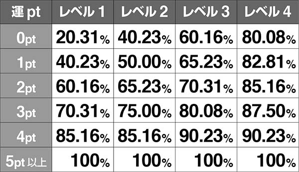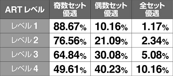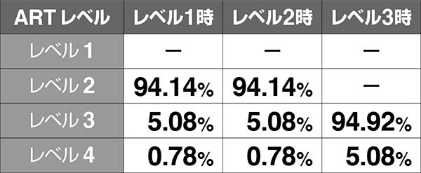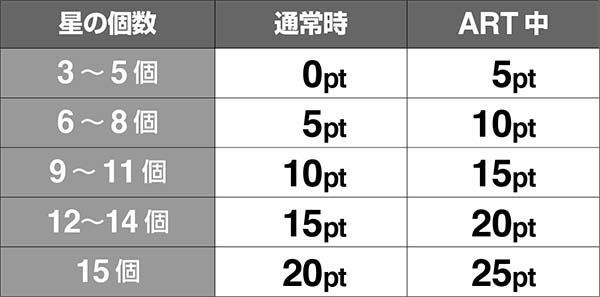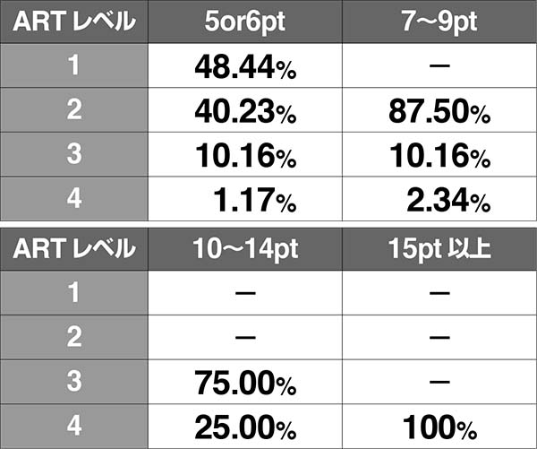 ボーナス中に5pt以上獲得した場合は、ポイント数に応じてARTレベルを抽選。