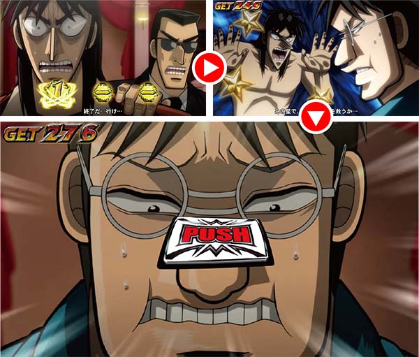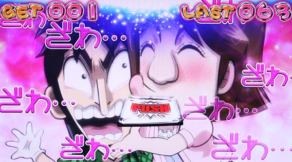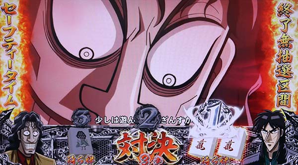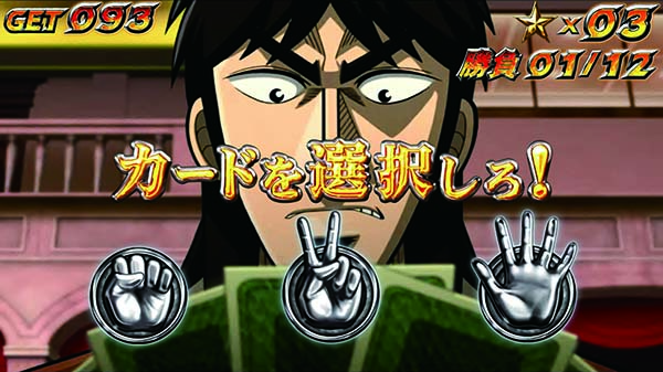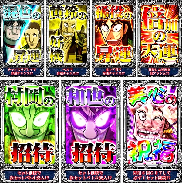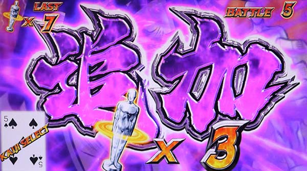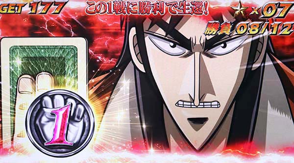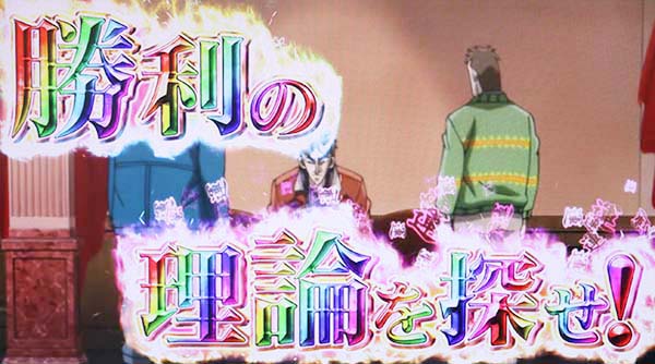 ボーナスと1セット30G+αのART「黙示録モード」で出玉を増やすA+ARTタイプ。 ARTの突入契機は通常時のレア役・CZ・ボーナスの3種類があり、どこからでもARTに期待が持てる。 「黙示録モード」中は、小役で運ポイントを貯めてセット継続を目指すのが主な流れ。 ワンポーカーや麻雀17歩といった原作の名勝負を再現した特化ゾーンなど、ロング継続へのトリガーも搭載されている。 |