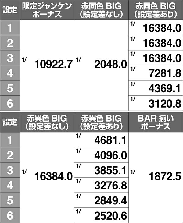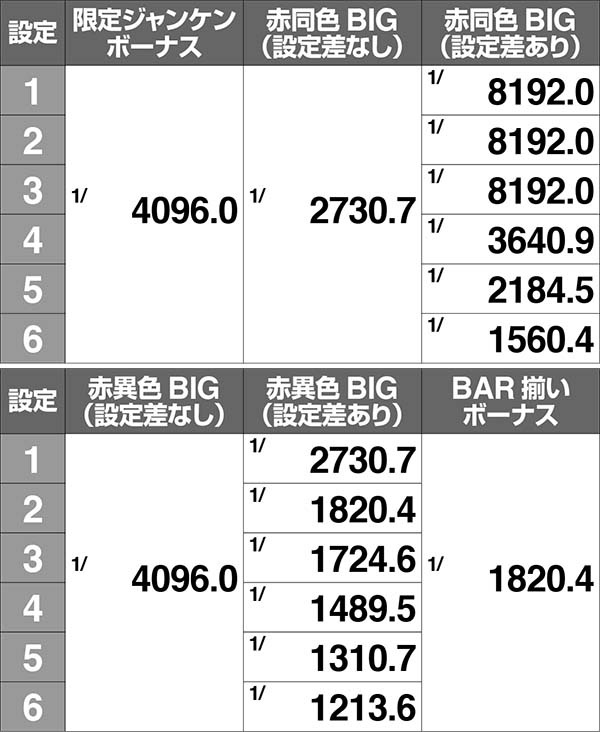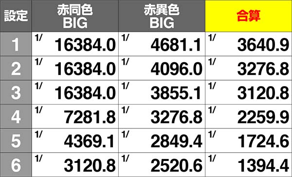 BIGには設定差ありとなしの2種類があり、非有利区間中に当選しないと判別ができない。