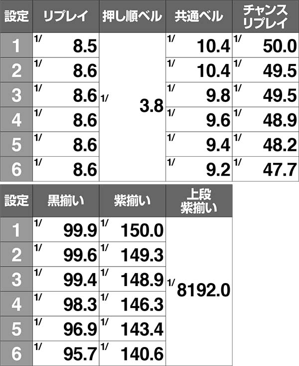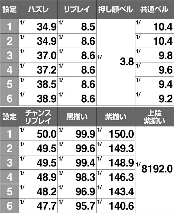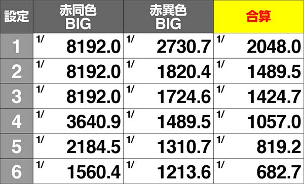 設定差のあるBIGの合算確率は、おおよそ600分の1を切っていれば高設定の目安になるだろう。