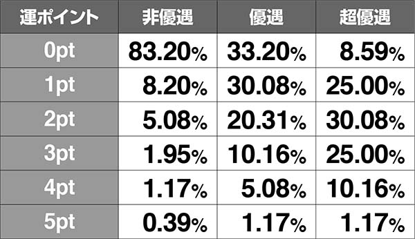設定差のないBIG当選時は、通常時ならART(運ポイントも獲得する可能性あり)、ART中なら運ポイントを抽選する。