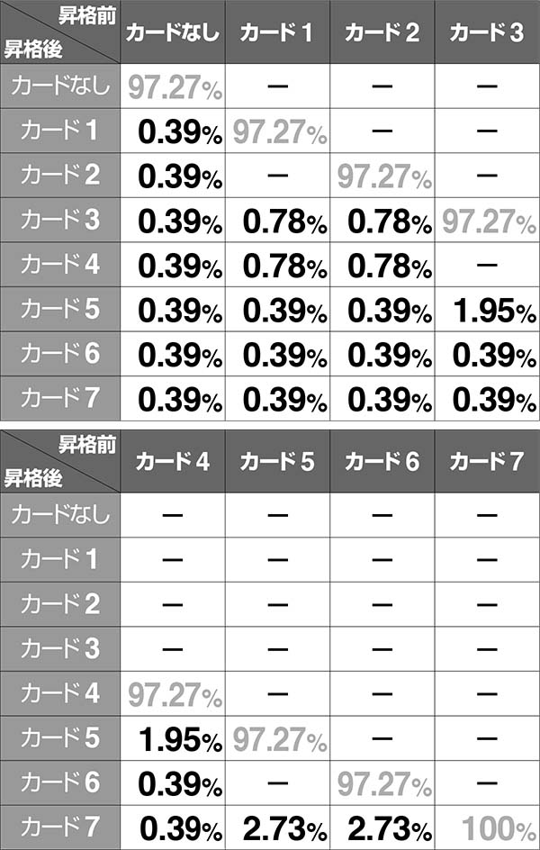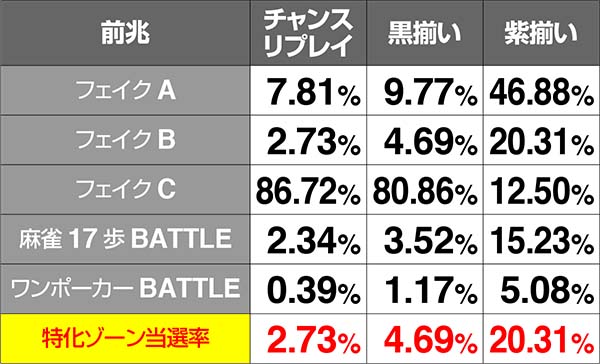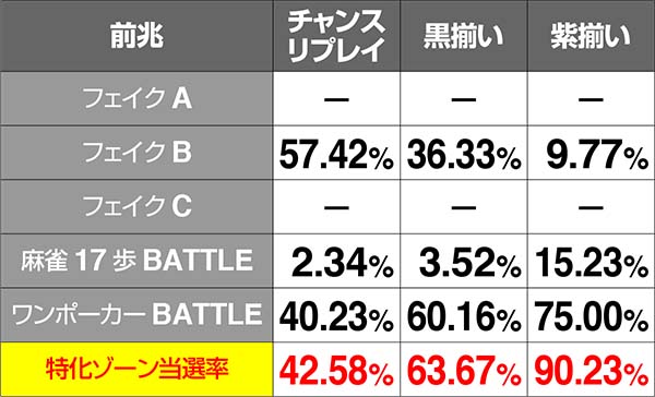 成立役と特定カード(カイジ策略)の有無で特化ゾーンの当選率が変化。